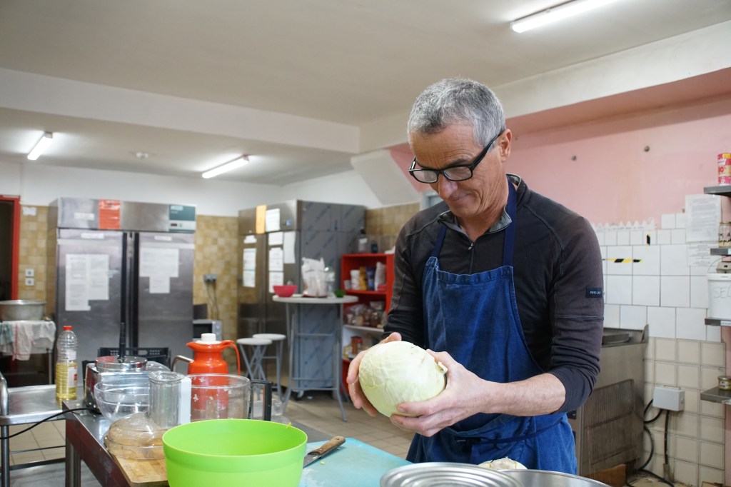 Trois repas par jour sont préparés par l’équipe bénévole pour les personnes accueillies. Ils sont préparés en cuisine et servis dans le self où tout le monde mange ensemble : personnes exilées, bénévoles et salarié-es. Lorsqu’il fait beau (c’est à dire souvent à Briançon !) nous mangeons également sur la terrasse avec une vue qui surplombe les montagnes !