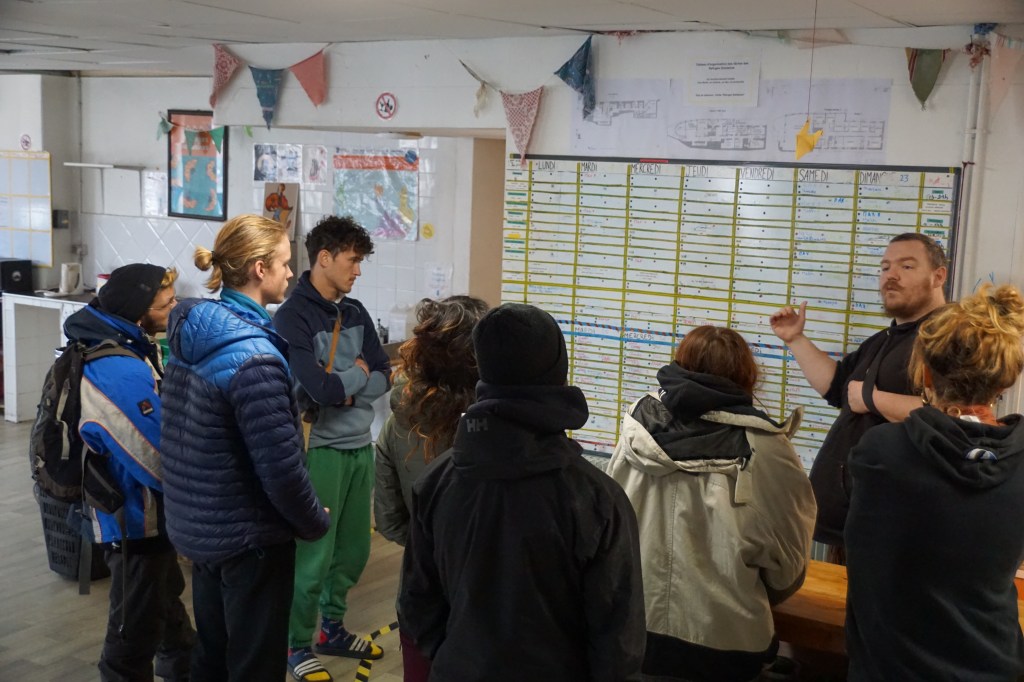 L’accueil et l’orientation des personnes accueillies sont toujours réalisés par des salarié-es ou des permanent-es (des bénévoles locaux ayant reçu une formation spécifique). Néanmoins, des bénévoles de passage, appelé-es BVA (Bénévole Volant Accueil) épaulent l’équipe de l’accueil dans leurs missions. Iels aident à installer les personnes dans les chambres, participent aux trajets de départ à la gare ou en stop, préparent les pique-nique… Les bénévoles peuvent également accompagner l’équipe de nuit jusqu’à minuit.